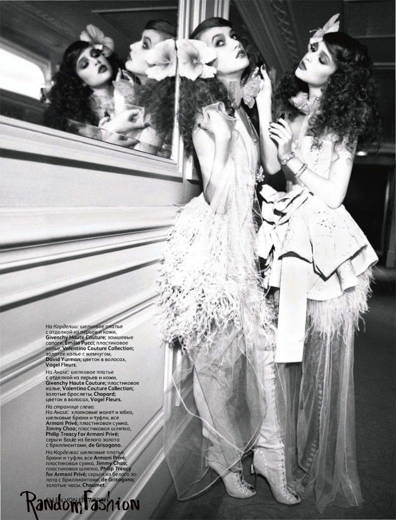 Traducciòn: En primer lugar, lo siento, por tardarme una eternidad y un año en publicar este editorial. Ahoraque me excusé hablemos acerca de este editorial increíble! Tan pronto como vi la primera foto me encantó!Parecen dos niñas ricas, (que están muy muy a la moda por cierto) a las cuales les gusta pasar un buen rato. Mi outfit favorito tiene que ser el Armani Privé Primavera 2011 Couture, me encantan los colores, y el hecho de que los tacones de cada una de las modelos es el color del vestido de la otra (entendieron eso?). El editorial es para la edición de abril de la revista Vogue Rusia, fue fotografiada por la maravillosa Ellen von Unwerth, y las modelos del editorial son Anais Pouliot y Cordelia K. El editorial fue estilizado por Katerina Mukhina. El editorial muestra una historia de costura muy alta, pero no es un tipo de alta costura que es perfecta e inflexible, es alta costura que es divertida, donde puedes jugar con tu ropa disfrazarte y convertirte en alguien totalmente diferente, se pueden divertir con la ropa!